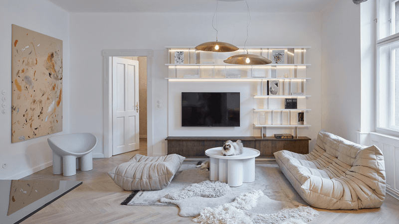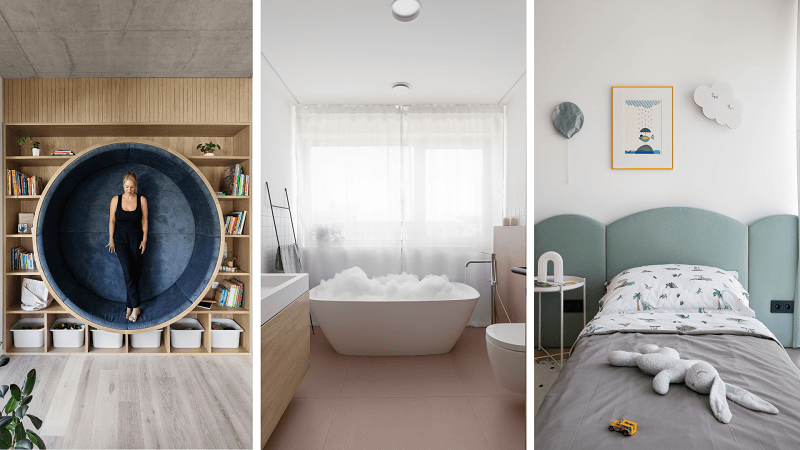 Nahoře: Byt E07, Autor: Ing. arch. Martina Homolková, studio MALFINIO. Foto: BoysPlayNice.