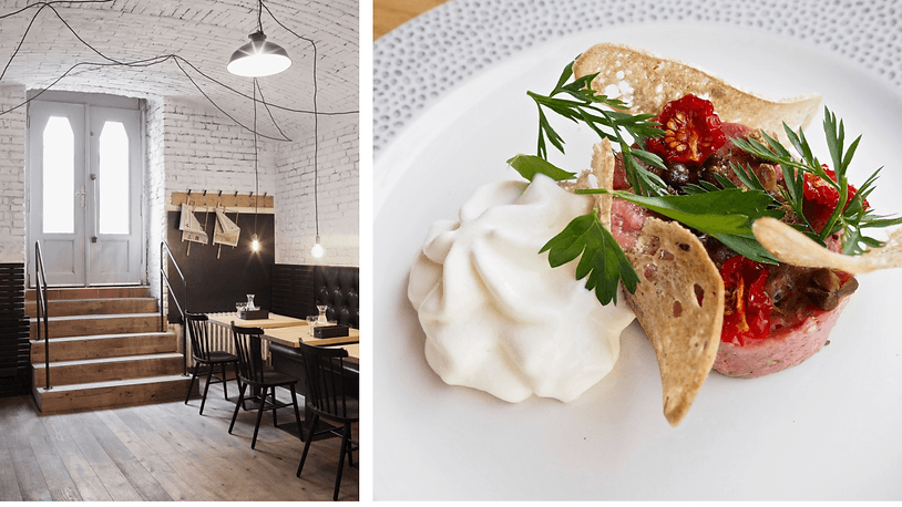 Velmi elegantní klasika Mezi všemi bistry a kavárnami působí podnik Dejvická 34 trochu jako zjevení. Vznikl v roce 2019, kdy bistra všude v okolí rostla jako houby po dešti. I proto se majitelé spolu s šéfkuchařem Tomášem Černým rozhodli otevřít úplně klasickou restauraci. Ochutnáte tu italskou kuchyni se středomořskými vlivy, protože právě od nejlepších italských kuchařů, jako je Vito Mollica či Riccardo Lucque, se Tomáš učil.