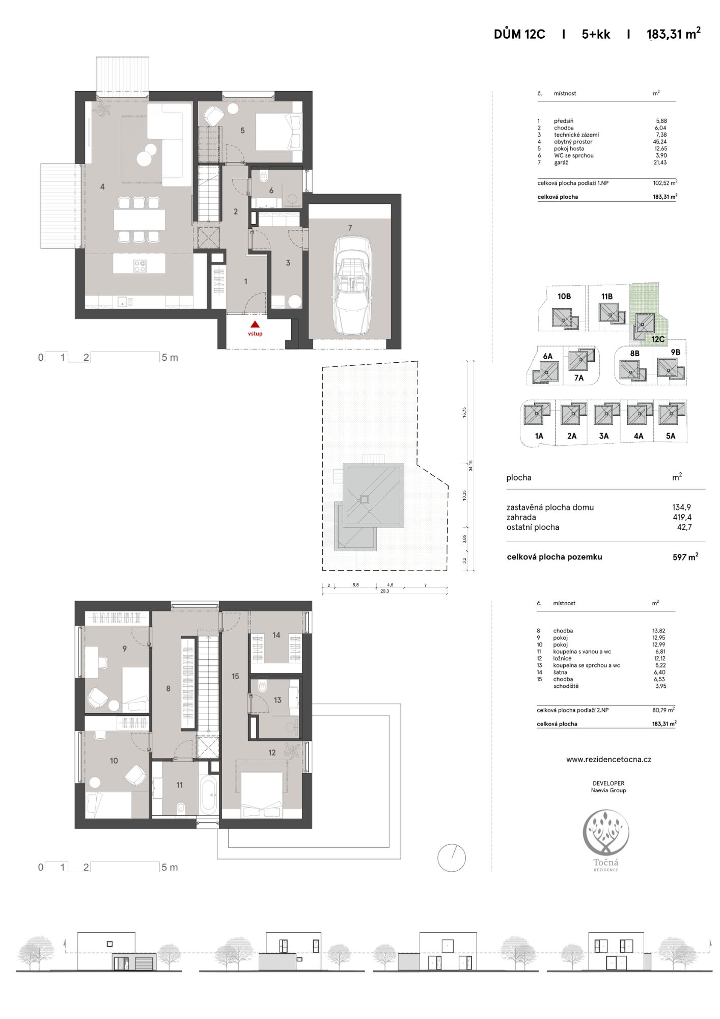 We are proud to present the residential project Rezidence Tocna– a collection of 12 family houses set in a peaceful location surrounded by greenery. A place where privacy, architecture, and nature come together in perfect harmony, creating an ideal environment for family life.