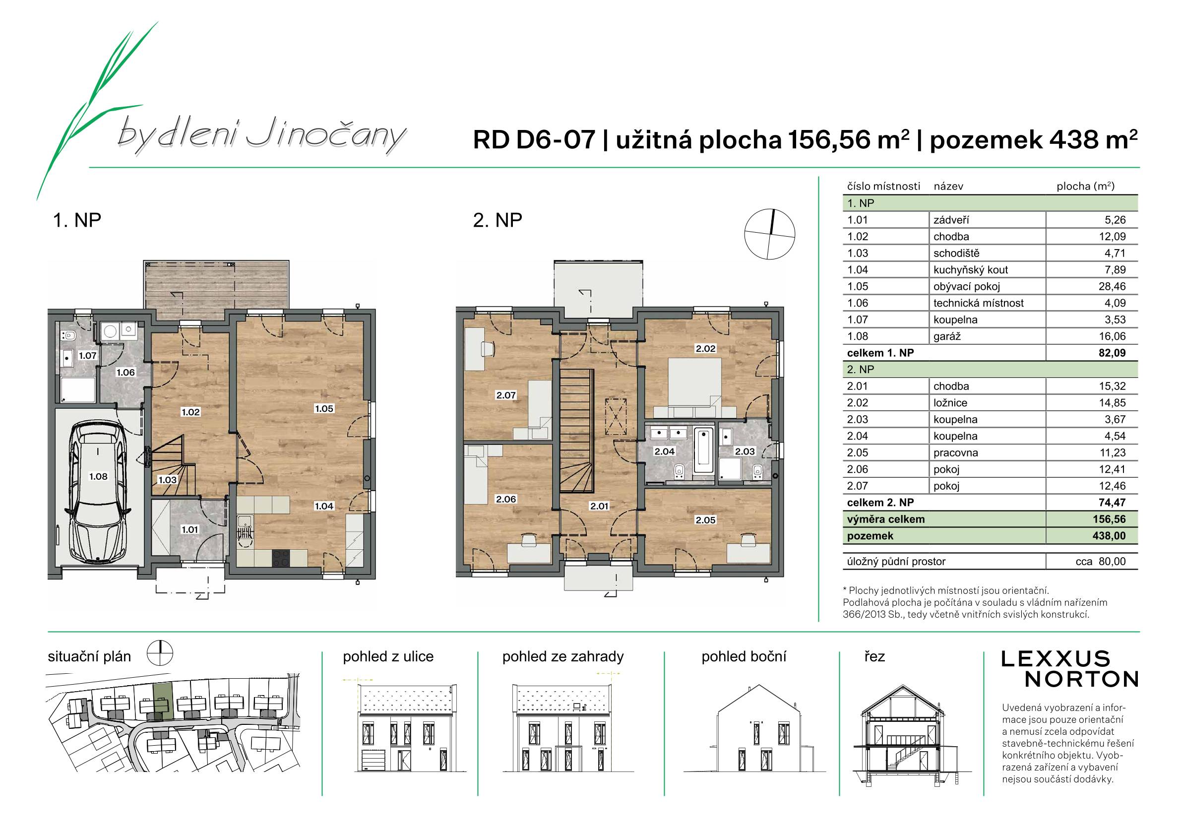 Domy 5+kk s vlastní garáží mají výměru téměř 157 m² a pozemky jsou ve velikostech 400–507 m².